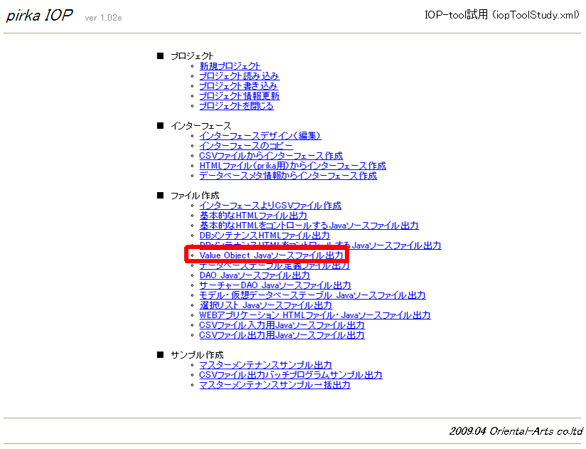メニュー画面で 「■ファイル作成 Value Object Javaソースファイル出力」 を選択