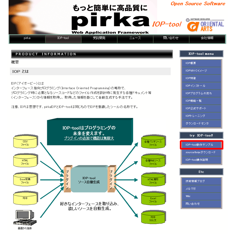 - pirka 公式サイト(http://wwww.oarts/iop/iop_top.html)から起動する