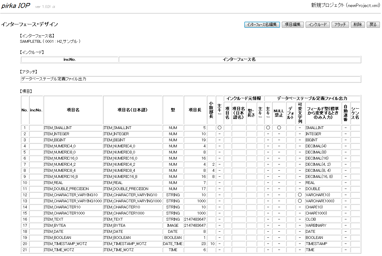 項目の型IOP-toolの型項目長小数部長
