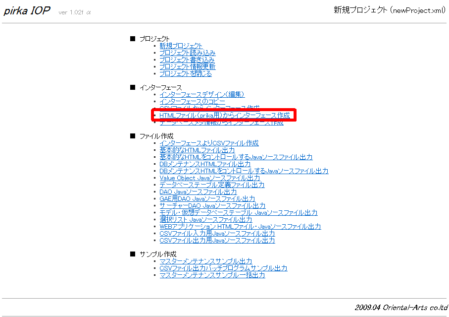 1.メニューから「HTMLファイル(prika用)からインターフェース作成 」を選ぶ. †