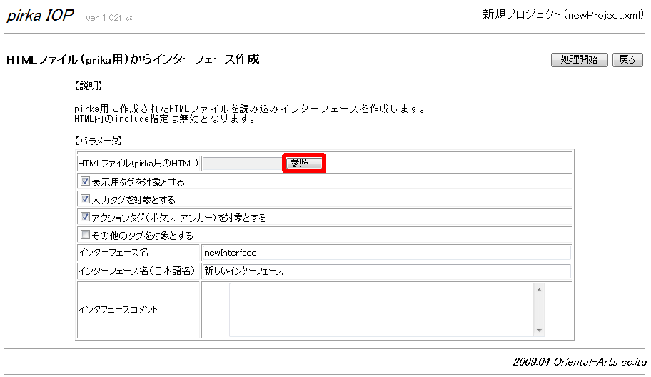 2.参照ボタンを押し、HTMLを選択する †
