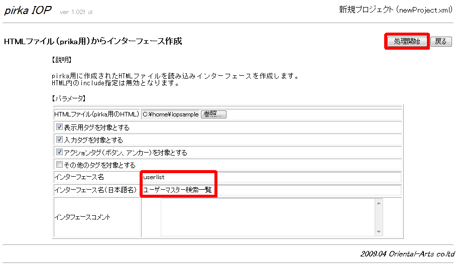 IOP-tool モックHTMLからインターフェースを作る †