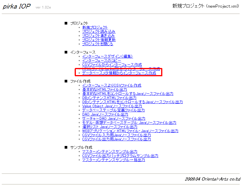 1.メニューから「データベースメタ情報からインターフェースを作る」を選ぶ. †