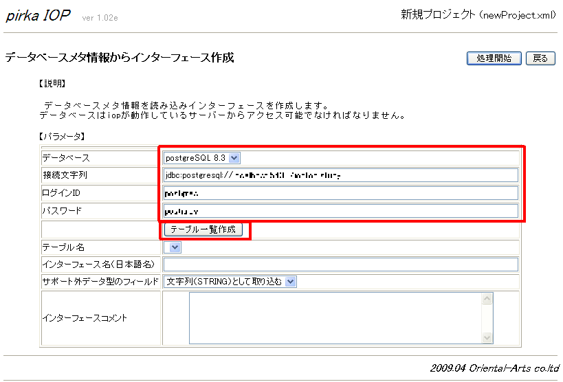 2.データベース接続情報を入力して、テーブル一覧作成ボタンを押す †