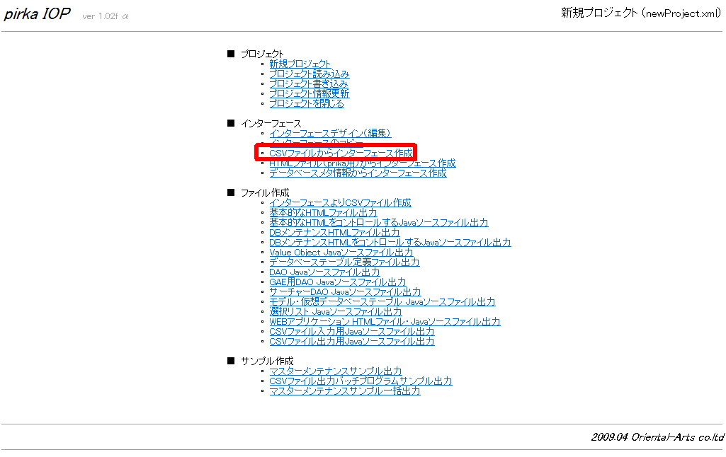 1.メニューから「CSVファイルからインターフェースを作る」を選ぶ.