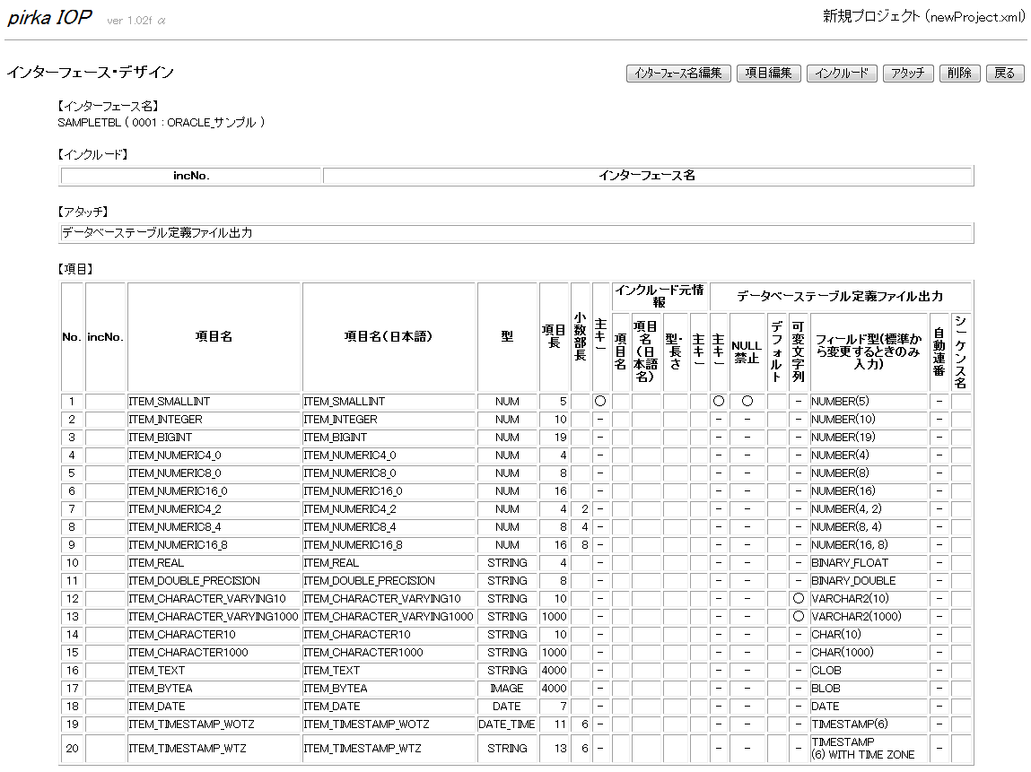 | 項目の型 | IOP-toolの型 | 項目長 | 小数部長 | |