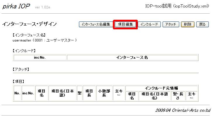 - インターフェース・デザイン画面で、「項目編集」ボタンをクリック