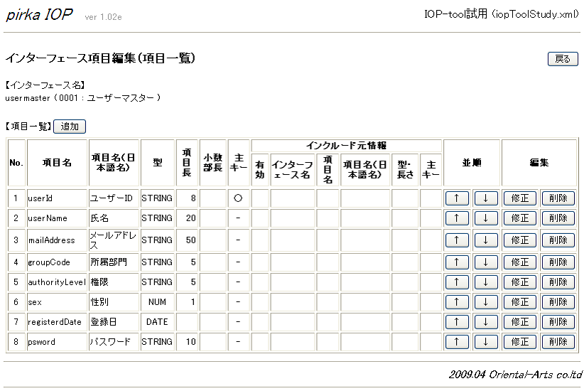 作業手順1:インターフェースを設計するで考えたインターフェースを、IOP-toolに登録する。