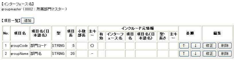 部門マスターのインターフェース