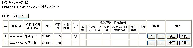 権限マスターのインターフェース