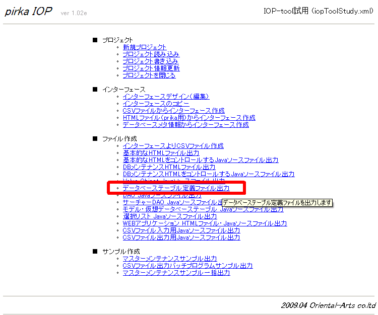 - メニュー画面で 「■ファイル作成 データベーステーブル定義ファイル出力」 を選択