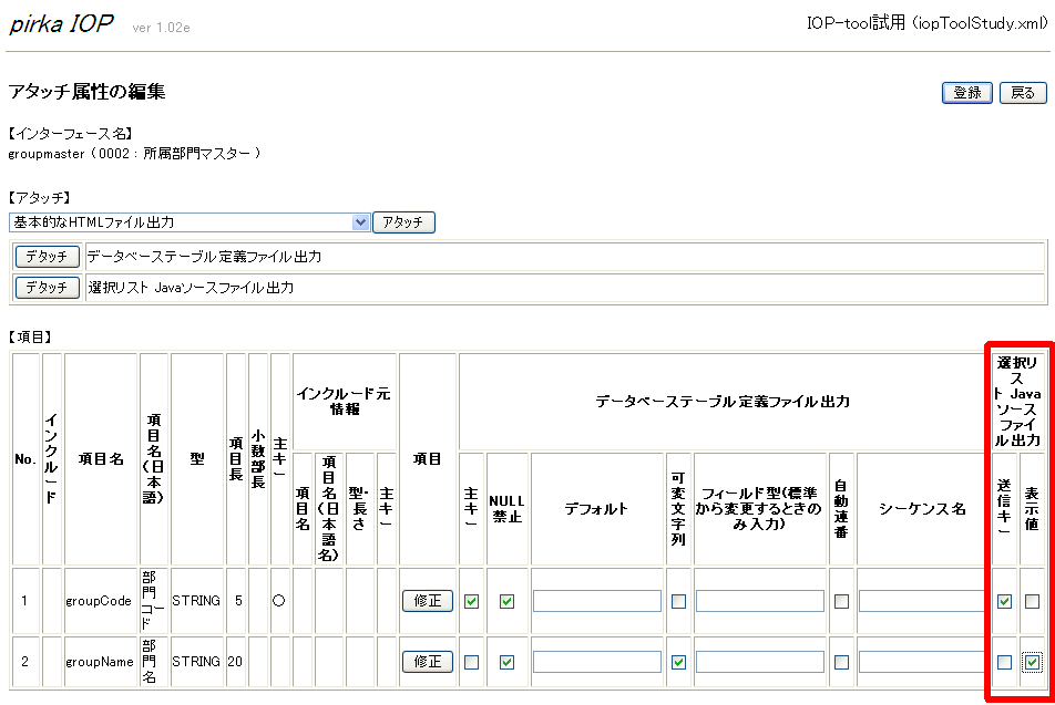 メンテナンス画面で使用する部門/権限の選択リスト用ソースを生成